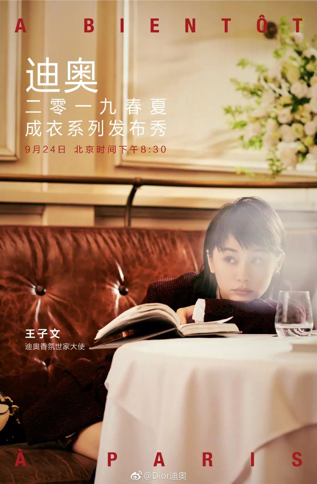 以女明星为例,Dior现有的几个女(明星)品牌大使-angelababy、赵丽颖、王子文、杨采钰里,杨小姐是几乎查无此人的状态,剩下三位,则是资源分配严重不均。(以下图均来自Dior官方微博,精修)