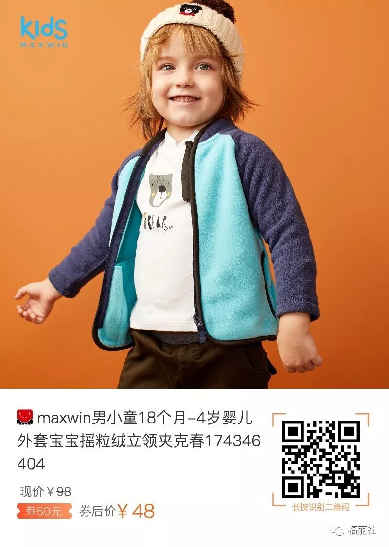 【败姐严选】maxwin 男童宝宝外套摇粒绒立领夹克,缓48,面料保暖,亲肤舒适,宝妈们反馈很好哦!