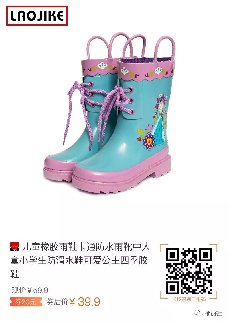 【败姐严选】老吉可 儿童橡胶雨鞋,券后39.9,天然橡胶材质,内里柔软舒适不磨脚,还有手提拎环~需要的入