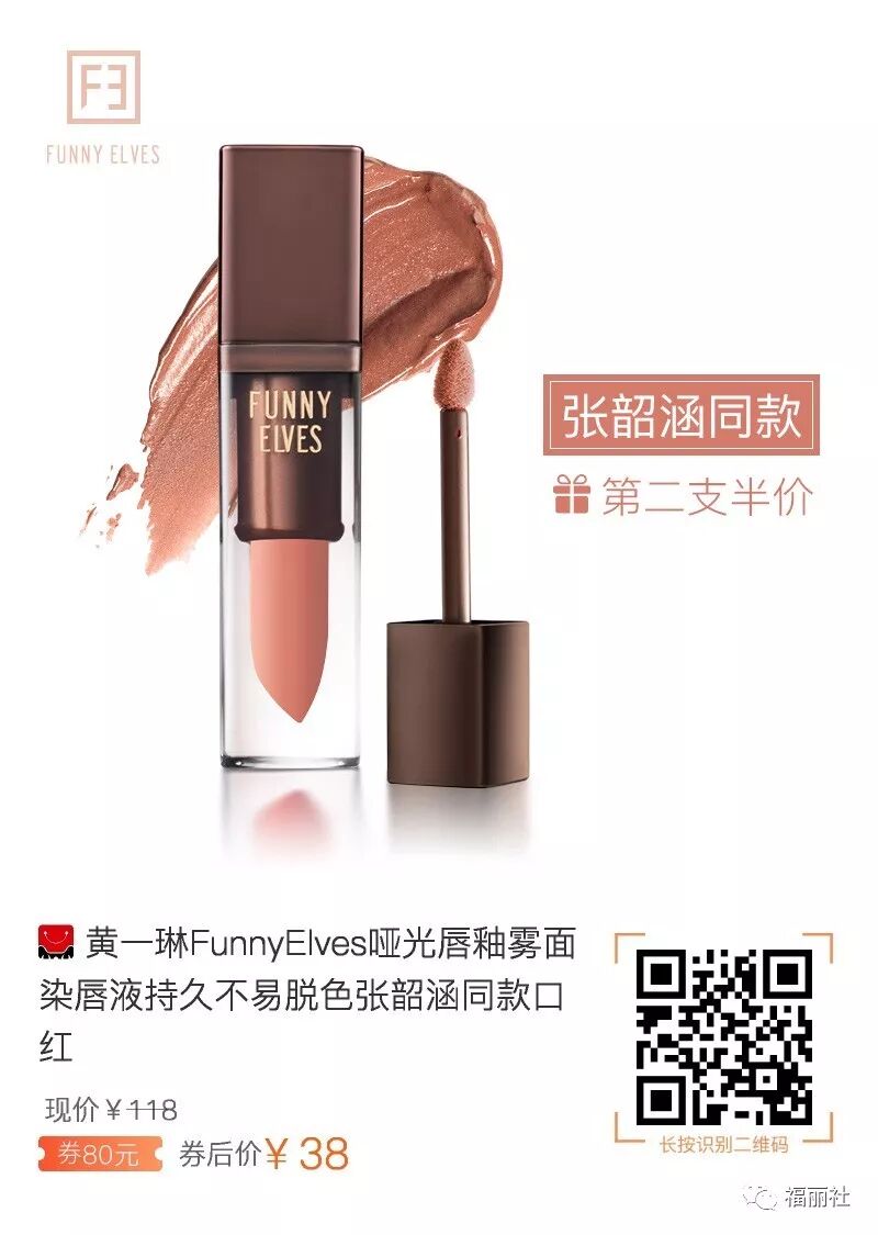 【败姐严选】FunnyElves 慕斯唇釉,明星同款唇釉,偏欧美风哑光丝绒质感,但很适合亚洲人,券后38,颜色也非常好看可以入手~