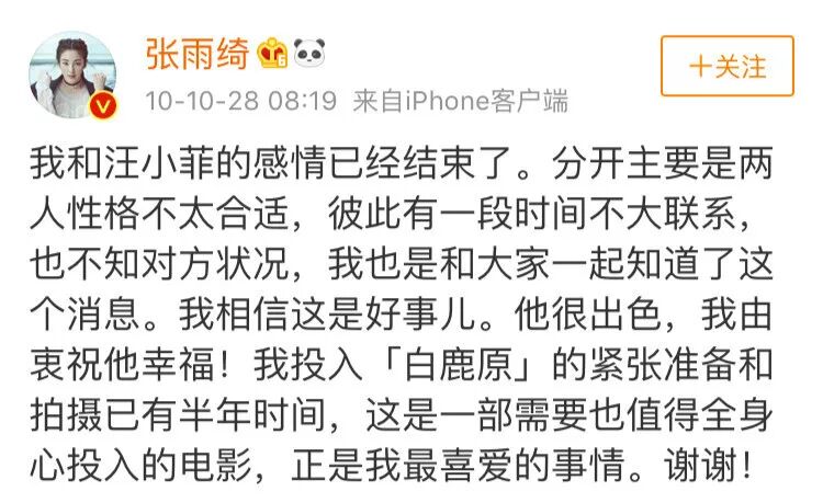 然后昨天,张雨绮就离婚了,真的是风风火火,说散就散。