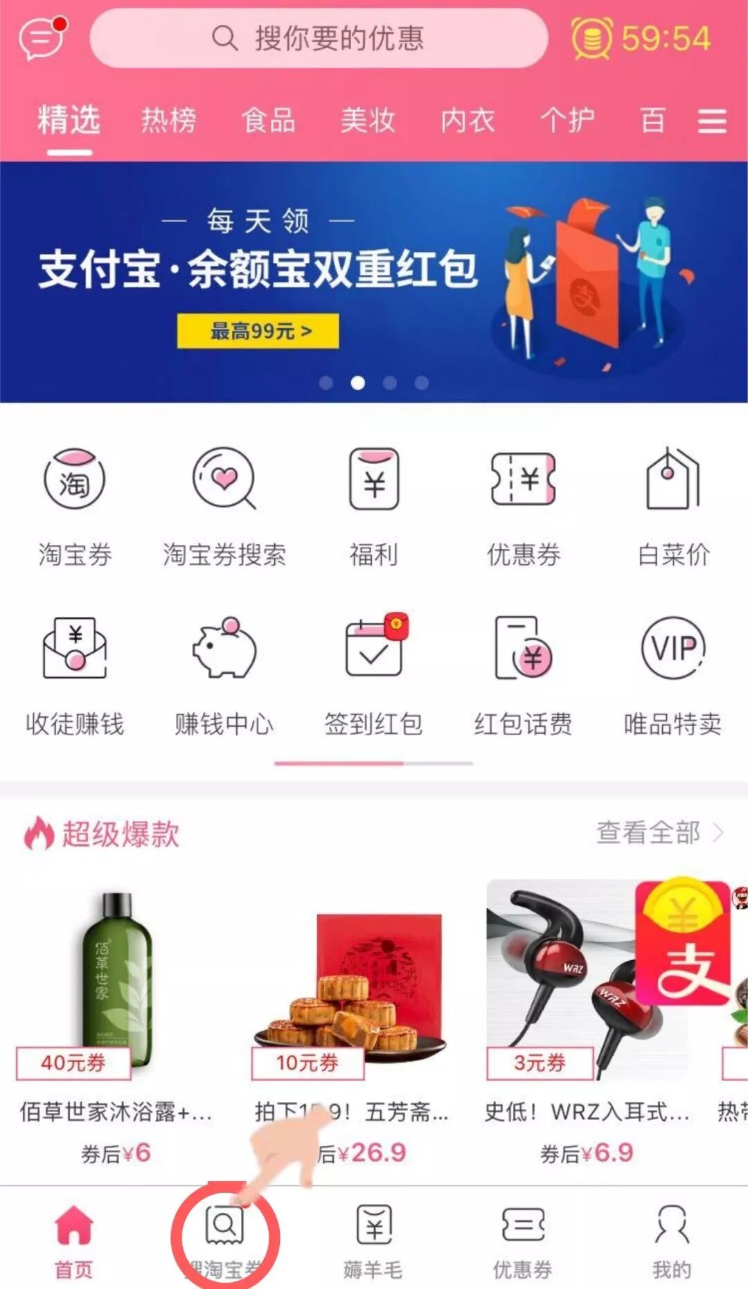 进入【搜淘宝券】频道