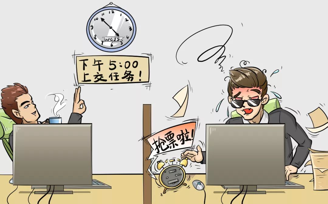 B抢票抢红了眼,耽误了工作,而且得提前请假,事情完成不了扣钱还被扣绩效。