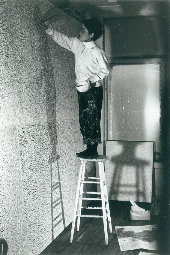 1958年,27岁的草间弥生抵达纽约,她在衣服里缝了几百美元,还带来60多件和服、一些素描,她的计划是通过出售其中一些来维生。