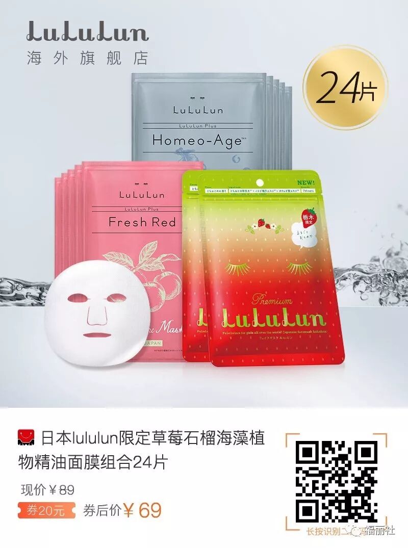 【败姐严选】日本lululun限定草莓石榴海藻植物精油面膜组合24片,券后69,海外旗舰店活动,超级好价,代购没有的价格啊~提亮肤色,服贴好吸收!
