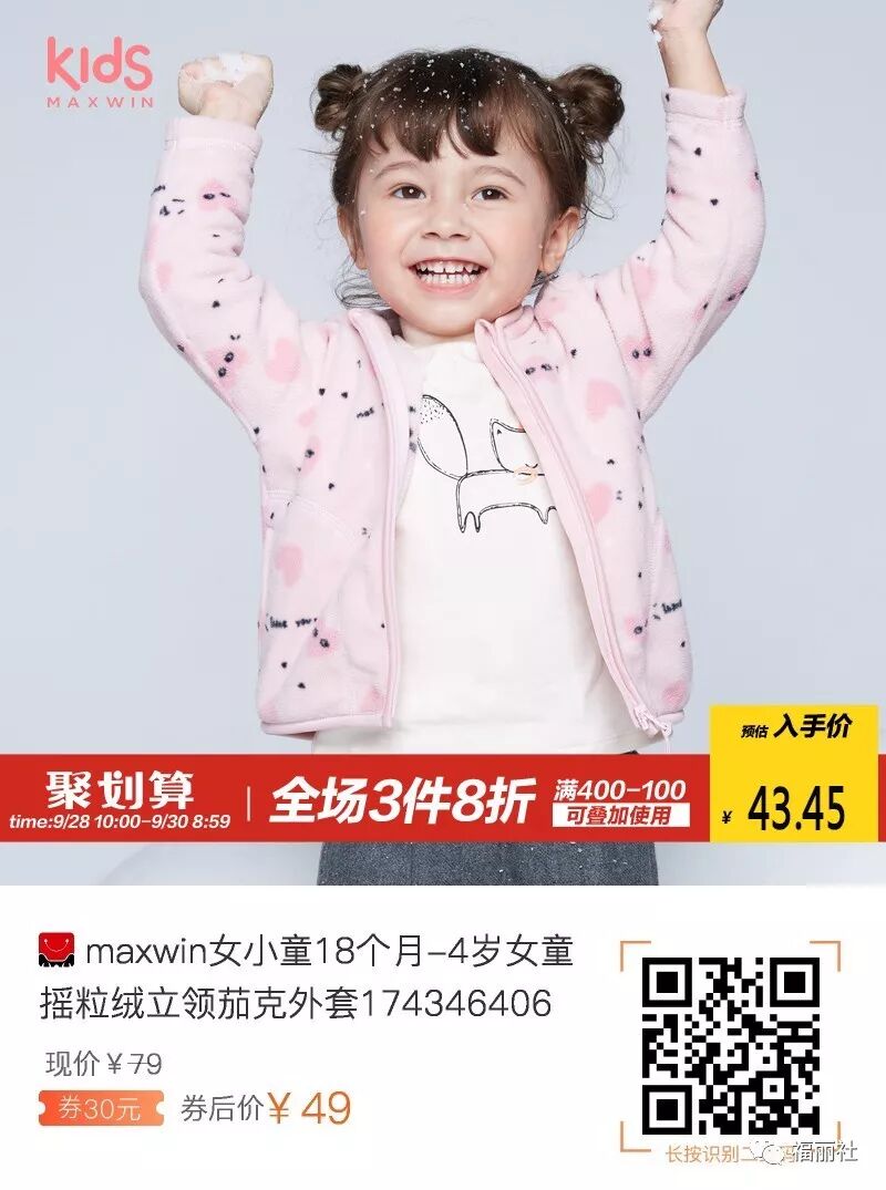 【败姐严选】maxwin女小童18个月-4岁女童摇粒绒立领茄克外套,券后49好价,这个牌子介绍很多次了,反馈很好,这款内搭外穿都很不错!
