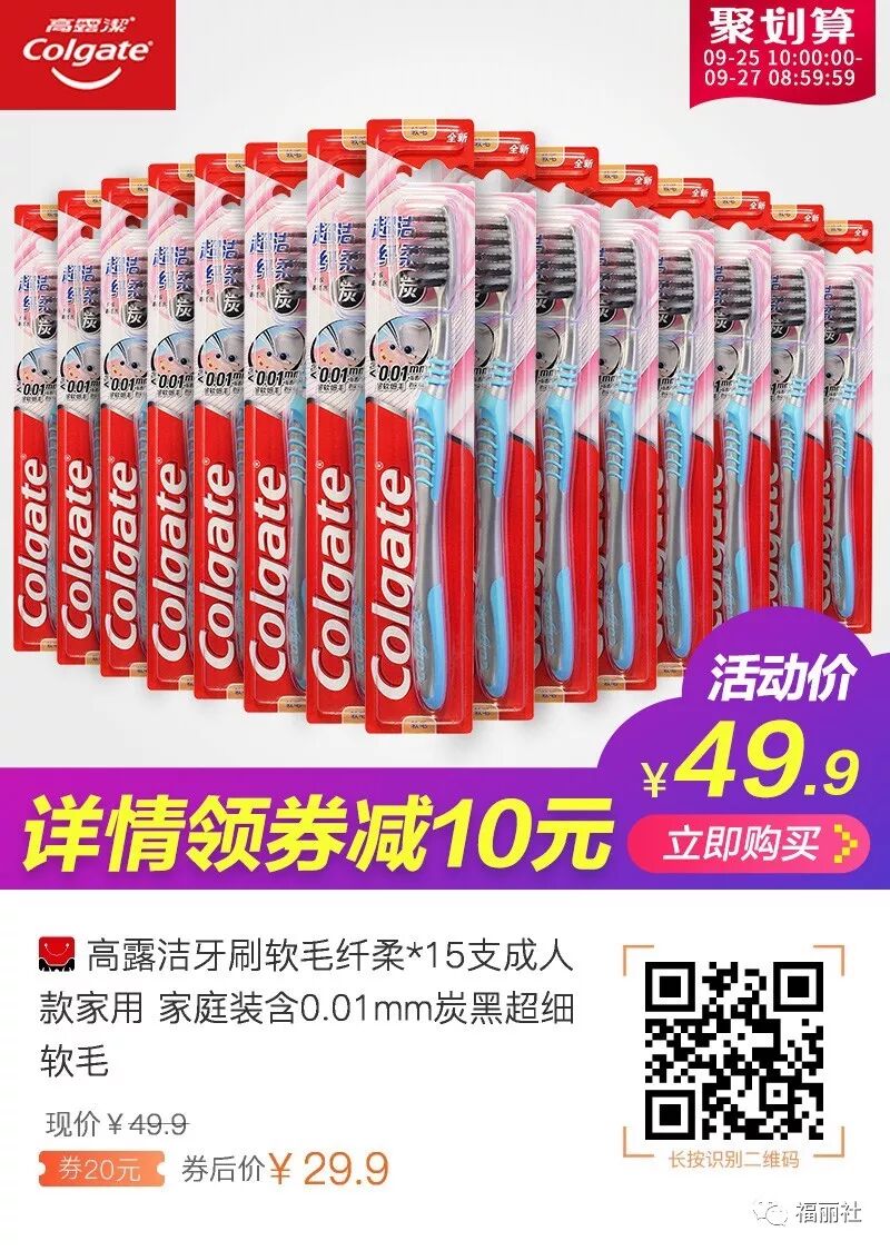 【败姐严选】高露洁牙刷软毛纤柔`15支,券后29.9,旗舰店活动!成人款家庭装含0.01mm炭黑超细软毛,家里备着总会用到哒~