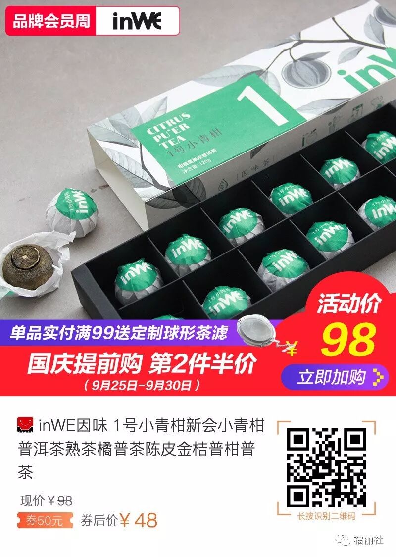 【败姐严选】这个还有活动!inWE因味 1号新会小青柑普洱茶120g,券后48,反馈特别好喝,包装送人也很合适,即有陈皮的清香,又有普洱的柔滑馥郁 ???