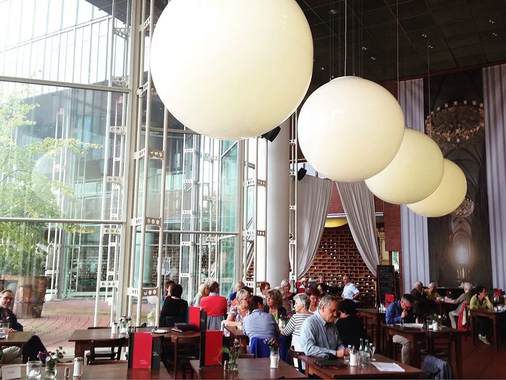 路德维希博物馆餐厅的层高极高,极具德国风格的落地玻璃和开阔的视野,让这个空间充满了阔大感。