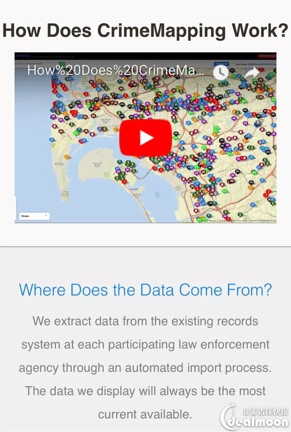 网站搜寻结果有一栏是Crime,听过红黄绿来表示犯罪率大小,红色意为“危险”,而绿色相对“安全”。