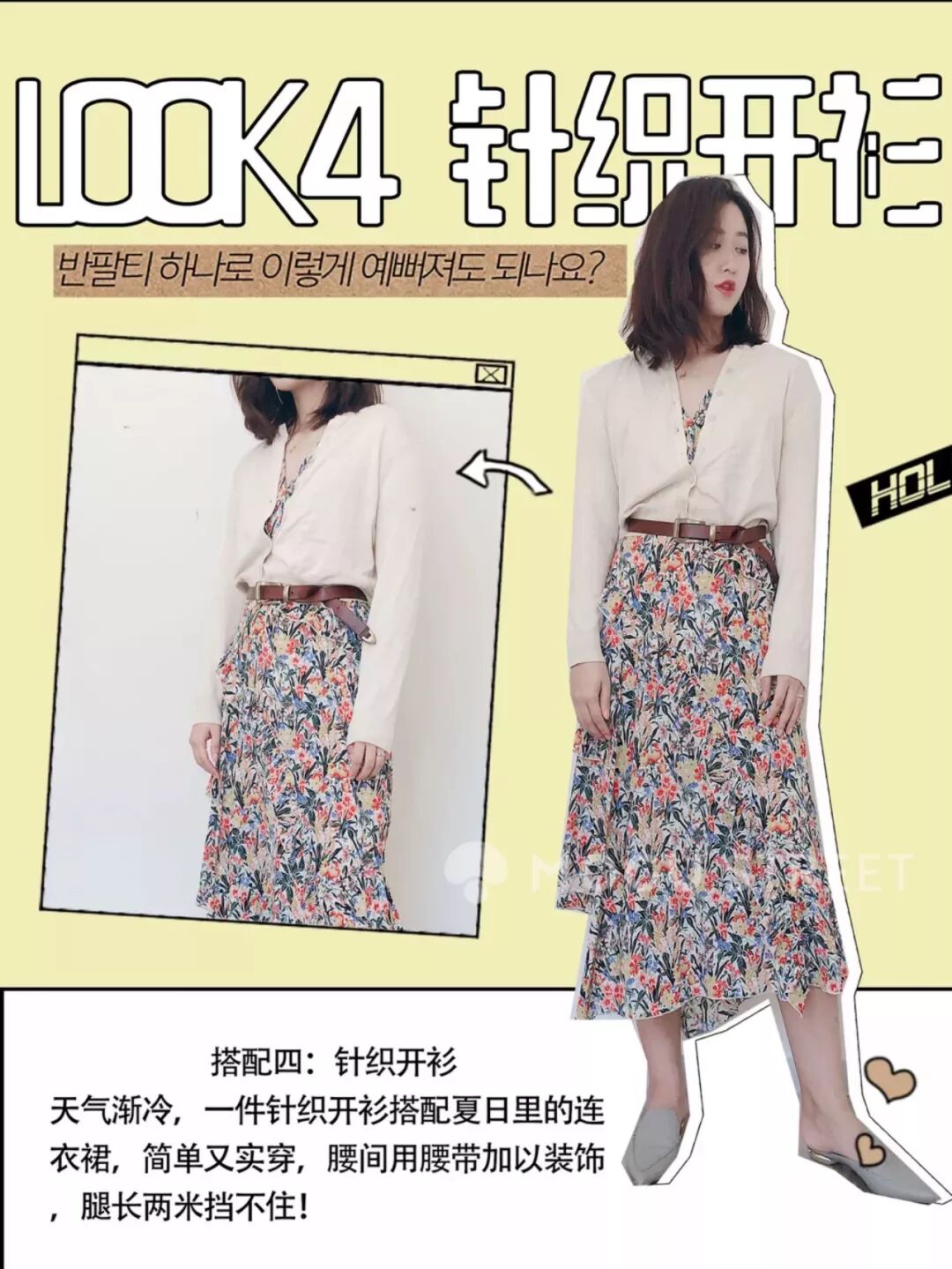 天气渐冷,一件针织开衫搭配夏日里的连衣裙,简单又实穿,腰间用腰带加以装饰,腿长两米挡不住!