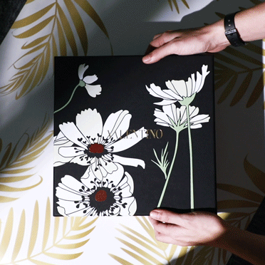 Salvatore Ferragamo也把自家本季的设计元素融合到礼盒包装中,代表喜庆的鸳鸯和冶艳傲然的花藤以拼接的手法结合,这种奢华的图案设计和对比鲜明的撞色,在众佳丽中显得特别出挑。