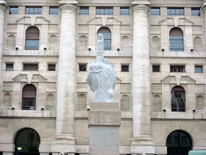 我想艺术圈也就他敢不顾争议,对着米兰交易大厅竖中指 —— 在大楼前放置一件高11米的雕塑,并为它起名“L.O.V.E”。(爱意何从?见仁见智啦~)