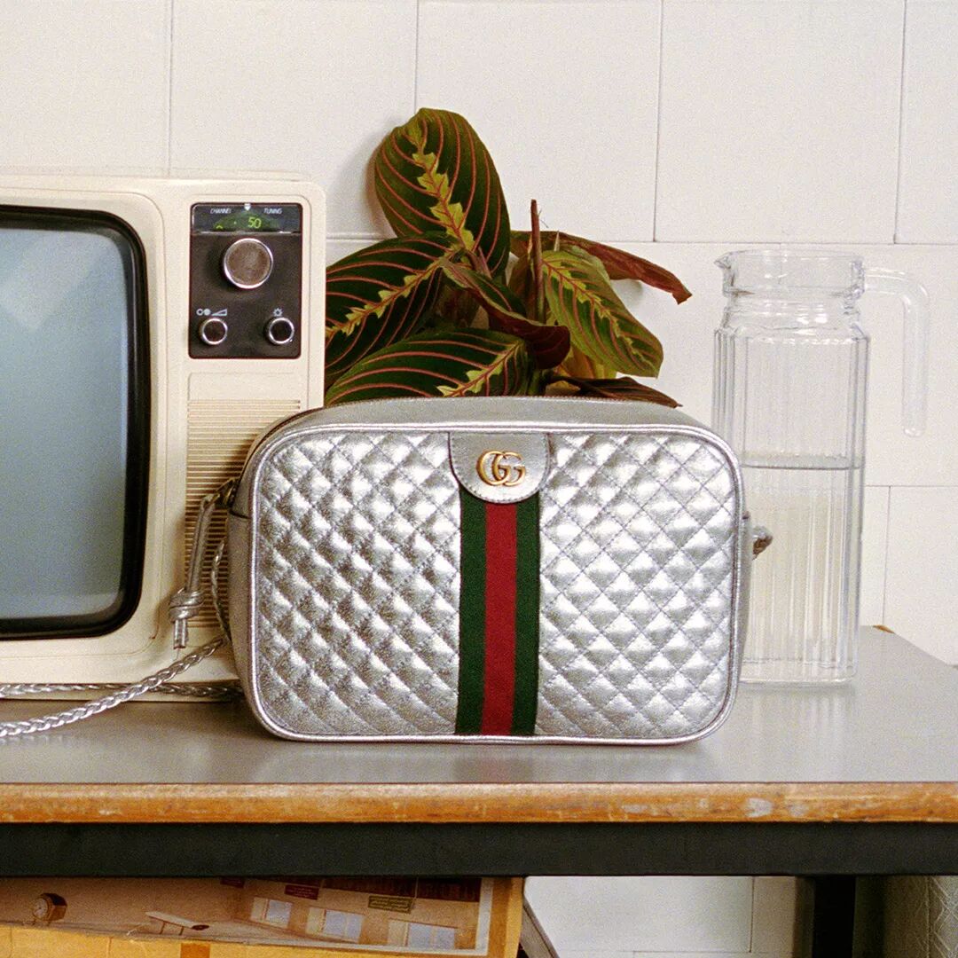 不过我个人更喜欢这个银色的相机包,可能是我对GUCCI标志的绿红绿织带没有抵抗力吧。