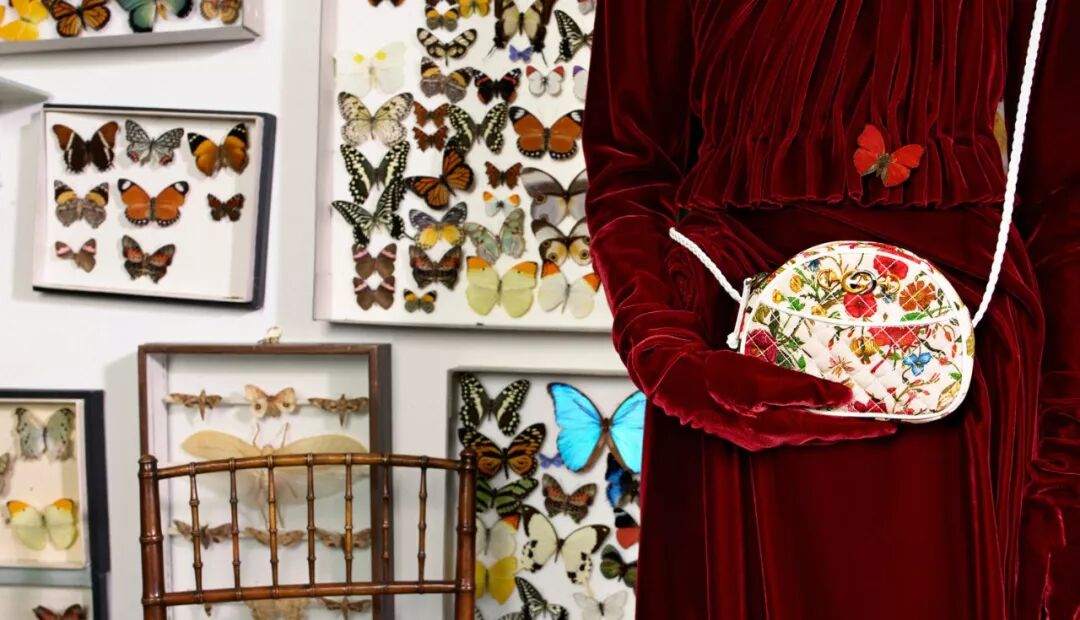 GUCCI还邀请他带着这些珍贵昆虫,做了一次活昆虫与时装的叠加,还原“昆虫系列”的设计理念。
