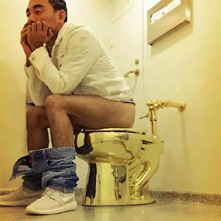 Maurizio Cattelan创作理念的大意是:无论你是穷人还是土豪,都离不开拉粑粑...每个人的生理需求都一样,不论富贵,不论贫贱。