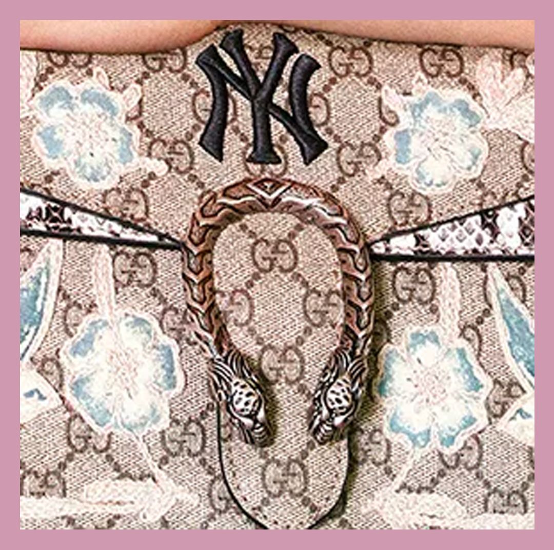而且真没想到洋基队传统运动风的NY标志,与GUCCI 古典的Dionysus酒神包搭在一起,如此match!完全找不出违和感,现代感的NY标志还为古色古味的虎头扣增添一丝年轻的气息。
