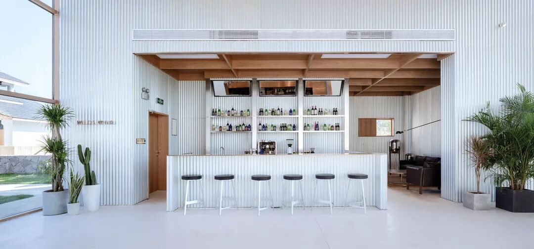 餐厅是简约的工业风格,三角式木质屋顶、大片白色内墙,超大空间搭配大大的落地窗。吧台有酒,餐桌上亦可自凭喜好叫上一桌符合心情的吃食,无论夜幕还是清晨,都可在舌尖得到丰盛满足。