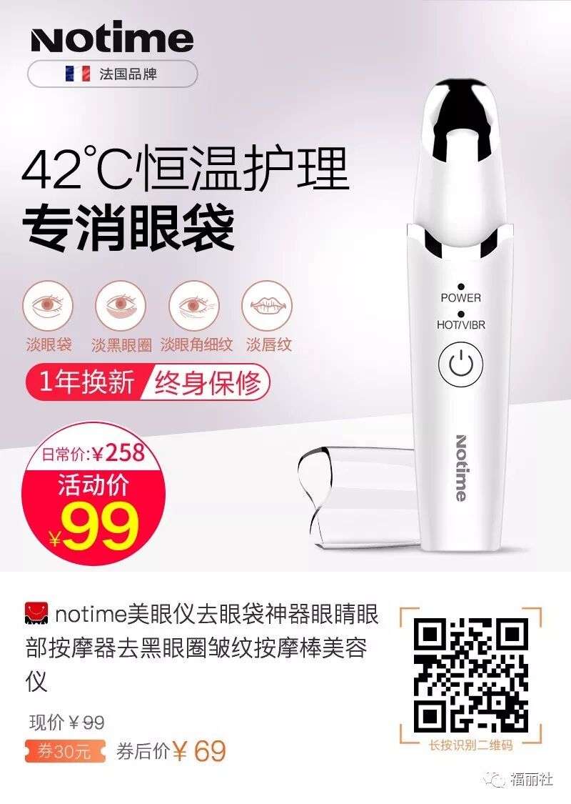 【败姐严选】notime美眼仪,券后69,专消眼袋,去黑眼圈,去眼角细纹,振动恒热三档可调节,一键式开关,便捷USB充电长久续航。反馈极好~