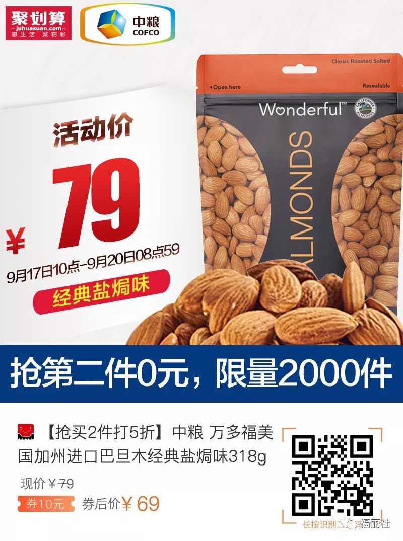 【败姐严选】美国进口wonderful巴旦木果仁318g2,第二件0元!拍两件仅69,中粮进口,非常好价,喜欢的别错过!