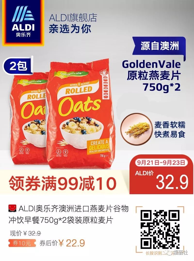 【败姐严选】ALDI旗舰店燕麦片750g`2袋,澳大利亚原装进口,券后22.9,非常划算,早餐搭配蜂蜜真的超养胃~