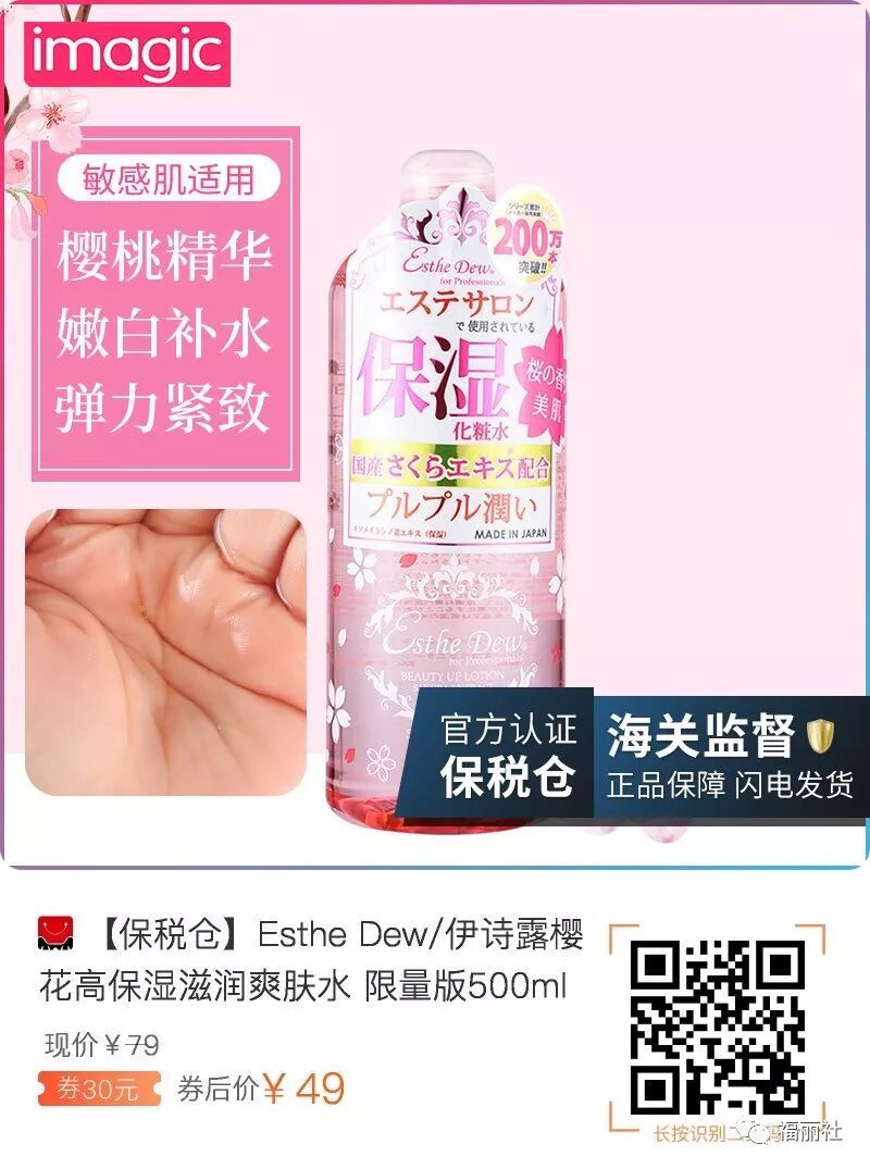 【败姐严选】日本Esthe Dew樱花高保湿爽肤水限量版500ml,日本原装进口,敏感肌肤也适用,清爽不黏腻,券后49,这款爽肤水回购率超高~