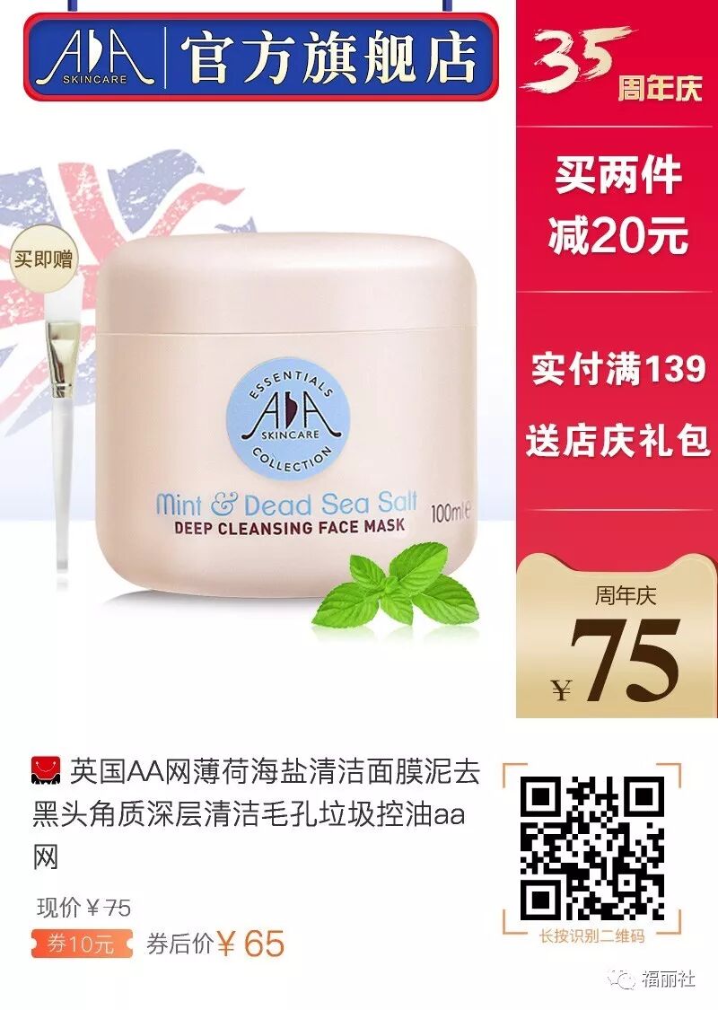 【败姐严选】英国AA网薄荷海盐清洁面膜泥100ml,面膜泥颜色清新,上脸凉飕飕的感觉,海盐泥颗粒不大,能深层清洁去除角质,券后65,还能有效去黑头哦~