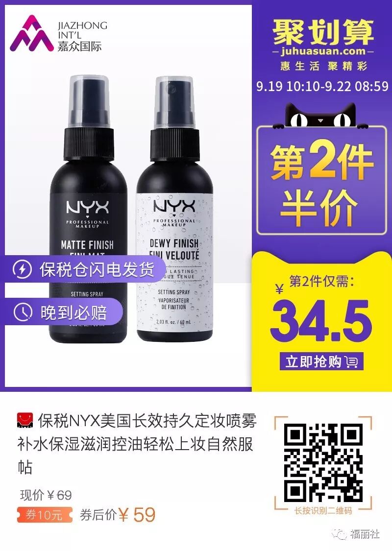 【败姐严选】NYX长效持久定妆喷雾,券后59,两款可选,哑光和亮面妆效,第二件半价,两瓶93.5,比在香港买都便宜~需要的趁好价入手!