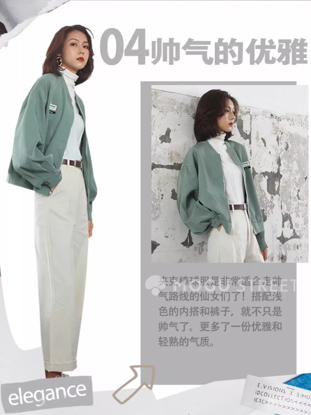 棒球服很适合走帅气路线的小仙女们了~搭配浅色内搭和牛仔裤,帅气中多了一份优雅和轻熟魅力。