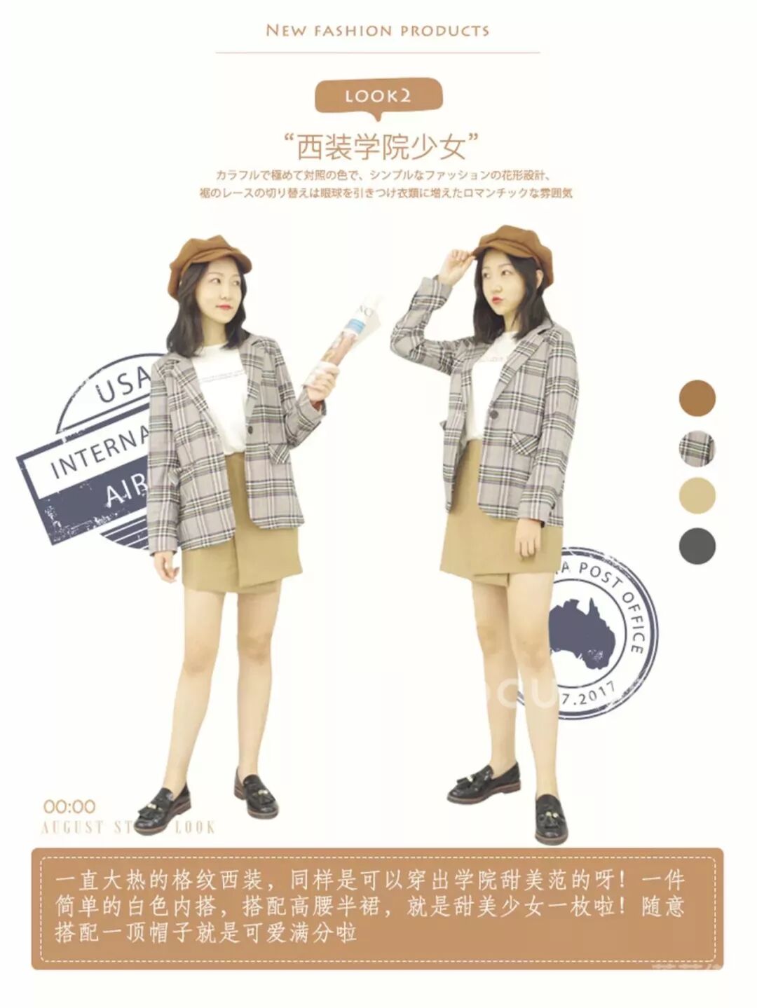 一直大热的格纹西装,穿出甜美学院风也是轻而易举的事情!搭配简单的白色T恤和高腰半身裙,学霸美少女既视感~