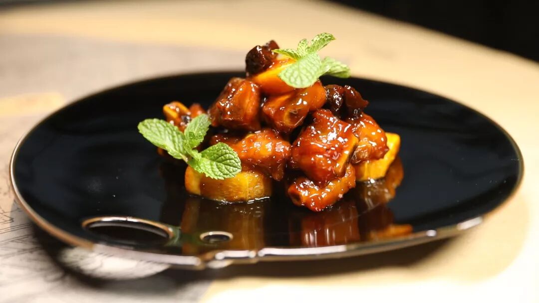 紧接着我们又点了橙汁排骨、凤梨虾球、新鲜水果的香味正好解去肉的油腻;福禄四拼、香煎鹅肝、铁锄牛排、招牌人间三口饭~光是看菜单上的名字,就足以让人垂涎。每一样菜品的量都不大,值得慢慢地品味。一口鹅肝,一口红酒,等等、这酒杯里装的竟然是香香软软的提拉米苏,甜美纯净而惹人动心,在既有甜品中玩出新花样,这般创意也很值得佩服了!