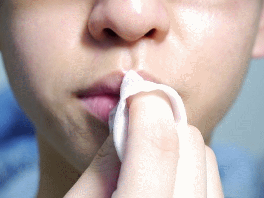 1、发现唇部有死皮时,先用温水把化妆棉沾湿,在唇部热敷3~5分钟,唇部死皮就会乖乖褪皮,软化之后轻轻擦走它。