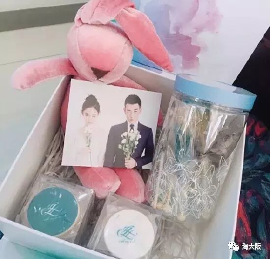 连伴手礼也是非常的低调朴实,不像其他明星有一大堆品牌赞助的礼品。红色兔子玩偶,喜糖、喜饼,看上去简单精致,却是浪漫满分。