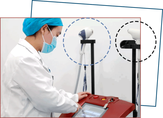 画重点:这台仪器有两个治疗头,每个治疗头因为参数不同,所以打出的射频不同,做出来的是不同的项目。