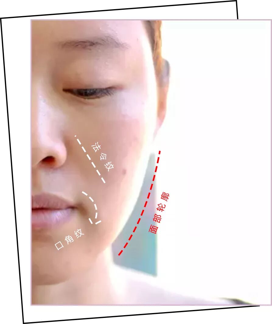 做之前能清楚的看到,我的脸部不够平整,一些法令纹、嘴边有一些口角纹,脸也圆圆肥肥的,不够紧致,整体皮肤呈现向下走的趋势。为了真实连痘痘都没p。