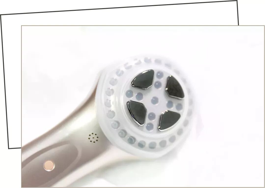 真正做热拉提的是下面这款圆形的治疗头,它的顶部有6颗珠子,这些珠子是冰冰凉的感觉,可以保护你的皮肤在加热的时候不受到伤害。
