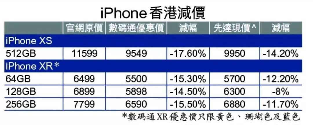 给小拼崽们列个表格,减价减得最狠的都在这里了,注意iPhoneXR优惠价只限黄色、珊瑚色和蓝色哦,听说现在快断货了,还不快冲!