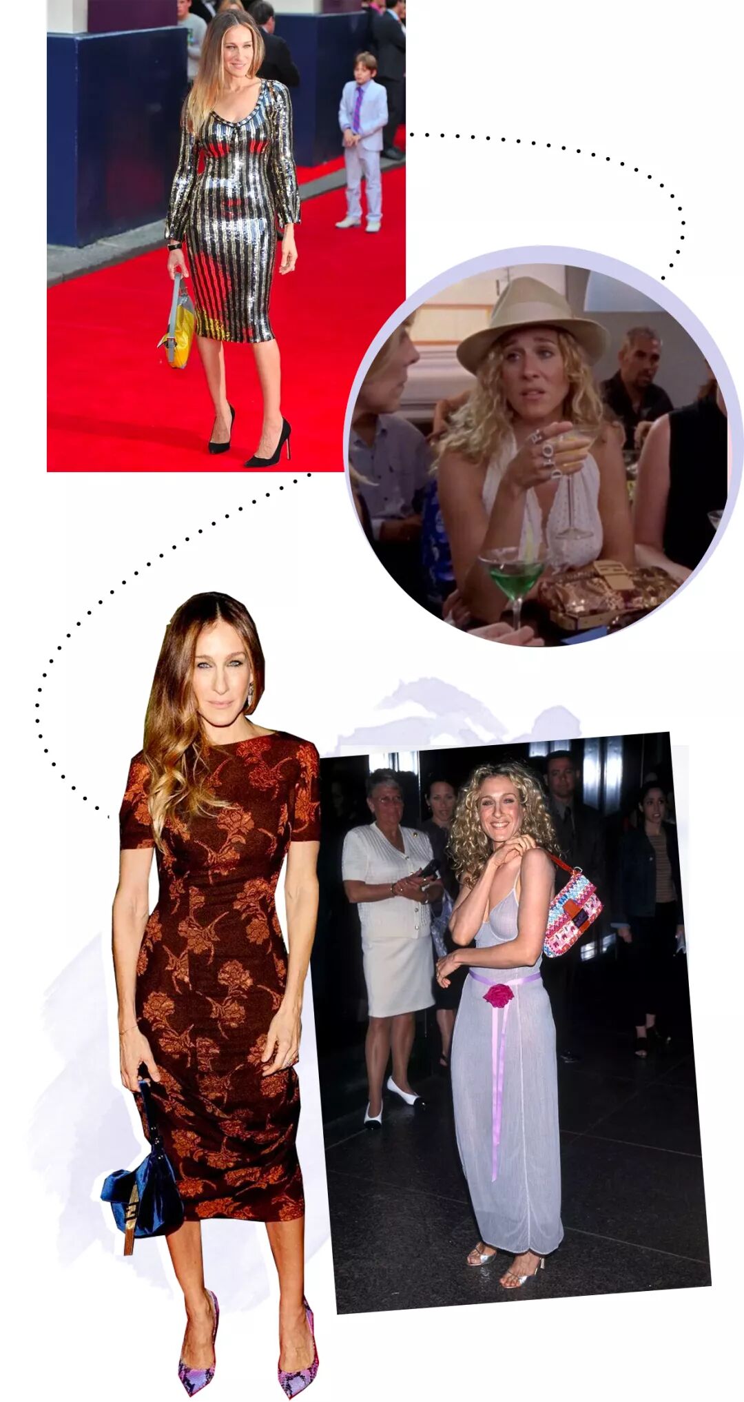 谁知道《欲望都市》播出后疯狂打脸,收视率和影响力节节攀高,最后不仅成为了现象级的都市剧,还成为了当时时尚圈的风向标。it bag这个词,当然是由it girl鼻祖Carrie Bradshaw创造咯。恰好Sarah Jessica Parker本人也对法棍包爱不释手,戏里戏外出席各种活动都离不开Baguette,于是法棍包就顺理成章地成为了每一个都市女性心目中的dream bag。
