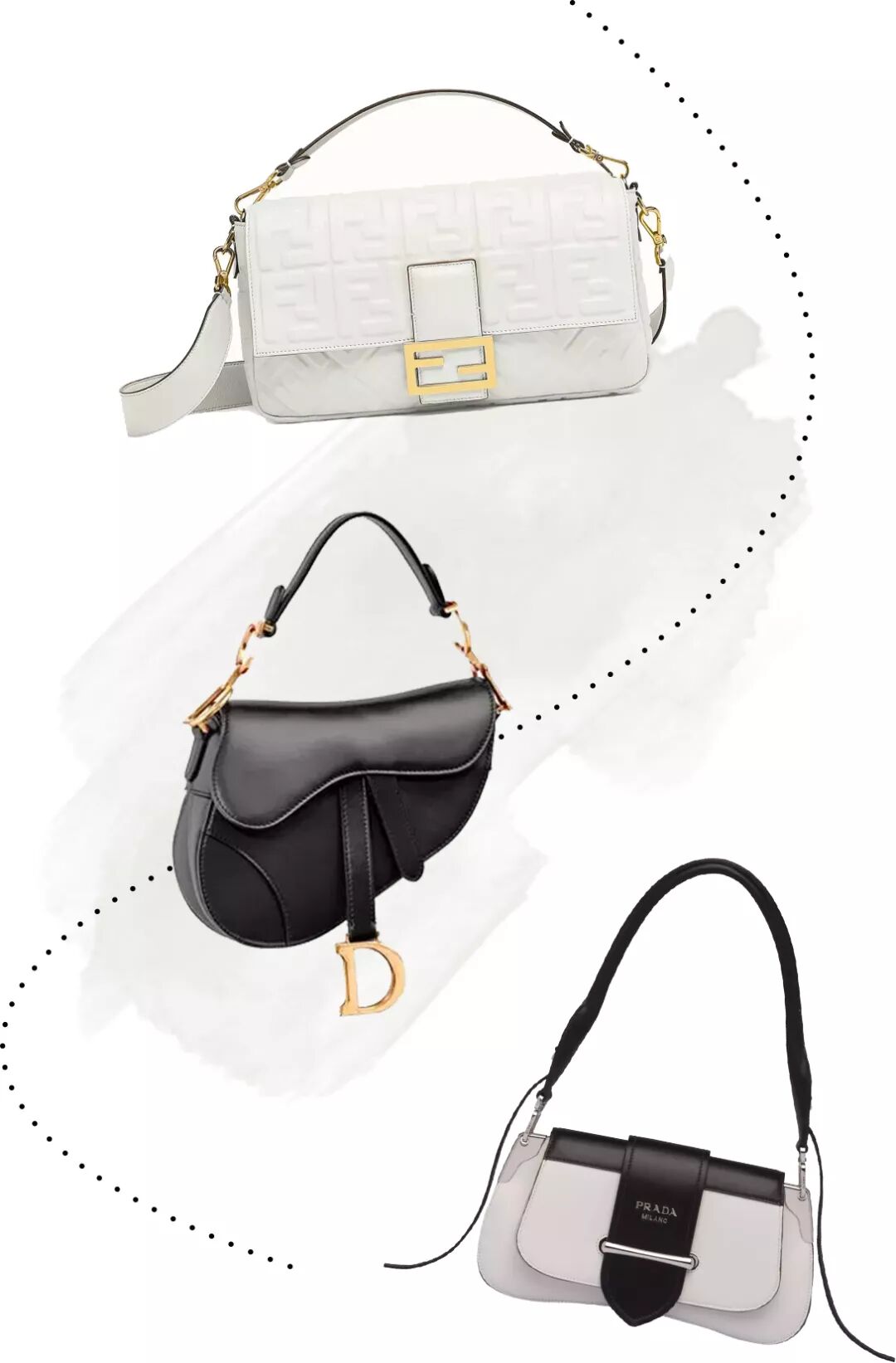 和去年大火的Prada Sidonie、Dior Saddle这几款同类型的腋下包相比,FENDI Baguette更简约,更有摩登女人的精致感