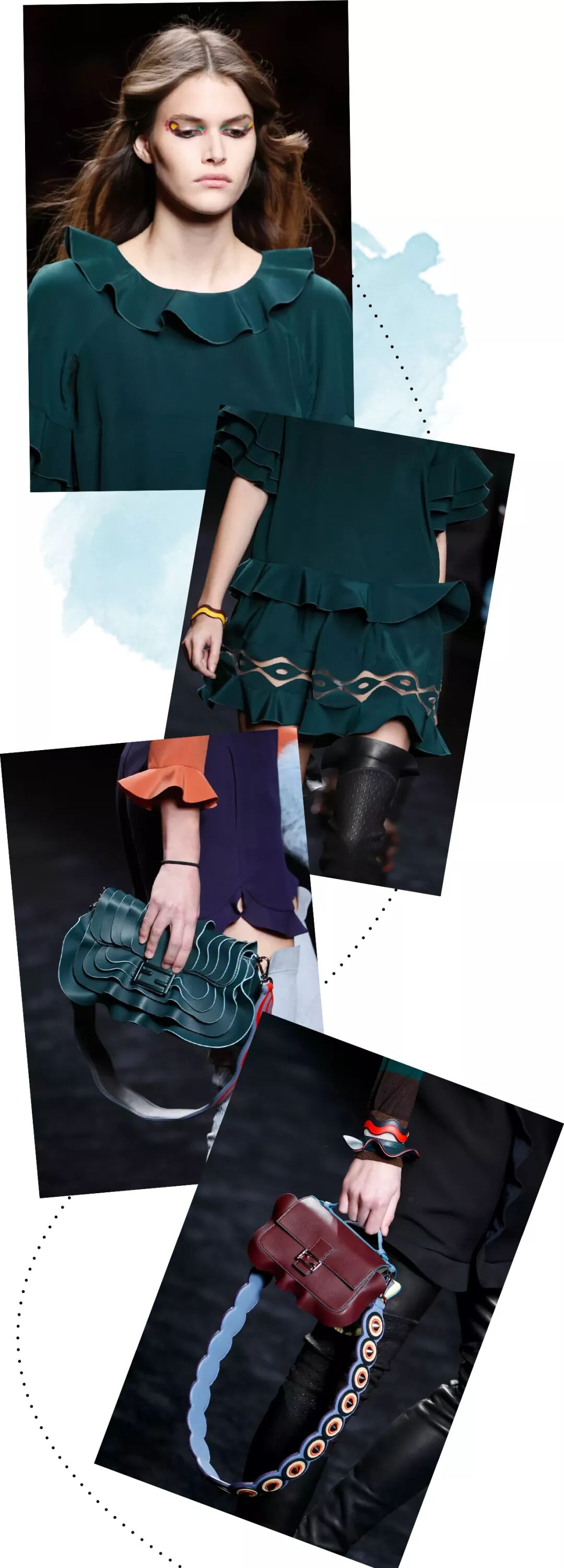 16秋冬秀场上大面积运用了荷叶边元素,于是便有了这些如水波一般柔美的Baguette。