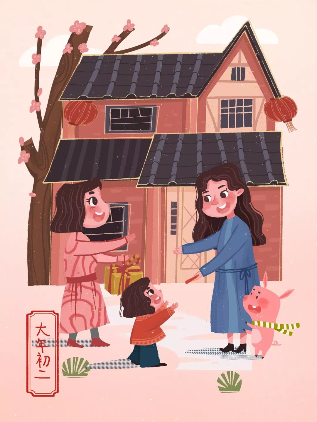 大年初二,是出嫁的女儿带女婿一同回娘家的日子,称为“回门”,又称“归宁”。