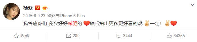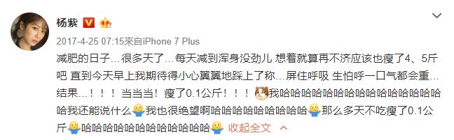 而且她是我见过最难瘦下来的女明星了,从2012年~2017年,年年拍戏年年减肥,连宣传都要带上减肥的话题……从而且微博里记录了她艰难的减肥史
