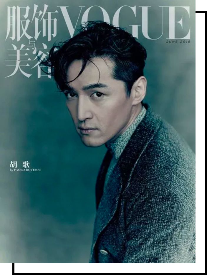 随后,胡歌又在2018年初春,由大师Paolo Roversi掌镜,在米兰为Vogue china六月刊留下了令人难忘的复古封面大片