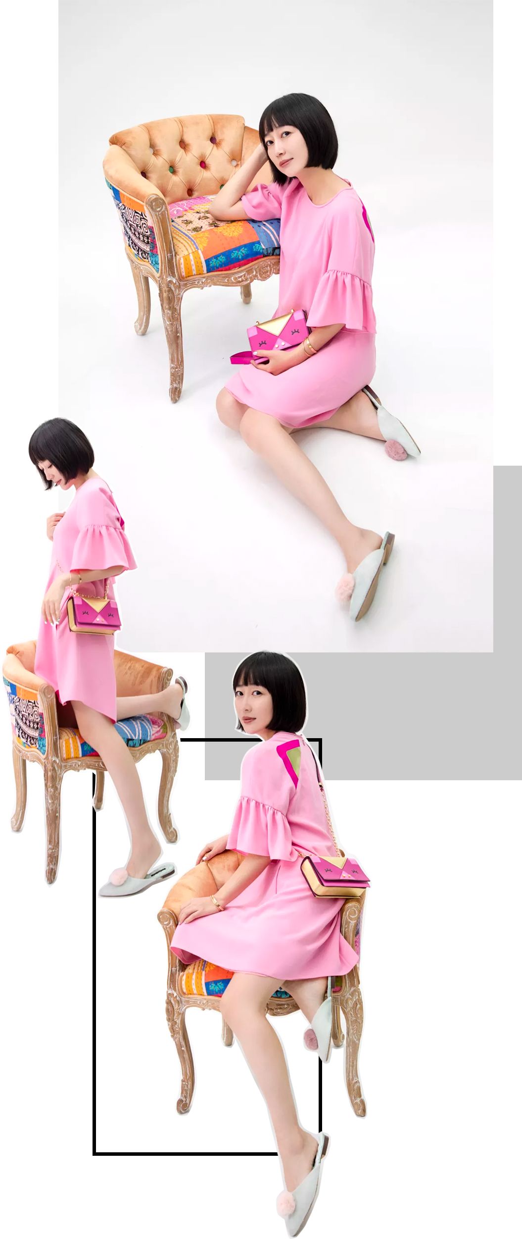 粉+金的撞色设计看起来童趣十足,少女心满满,搭配起我的连衣裙,简直太!可!爱!了!吧