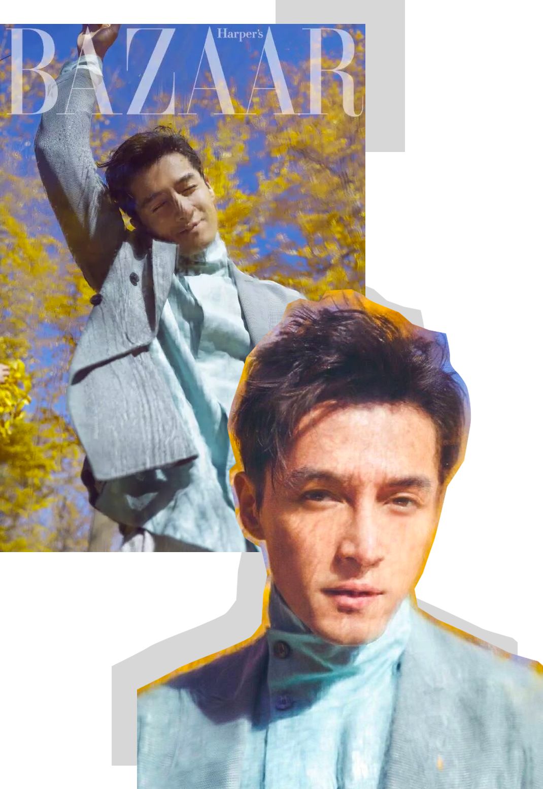 拿这组《时尚芭莎》1月刊封面来说,由摄影师陈漫掌镜,漫步在黄金落叶中的胡歌,帅气依旧,眼神温柔缱绻,镜头前朦胧的水光若隐若现,画面实属勾人