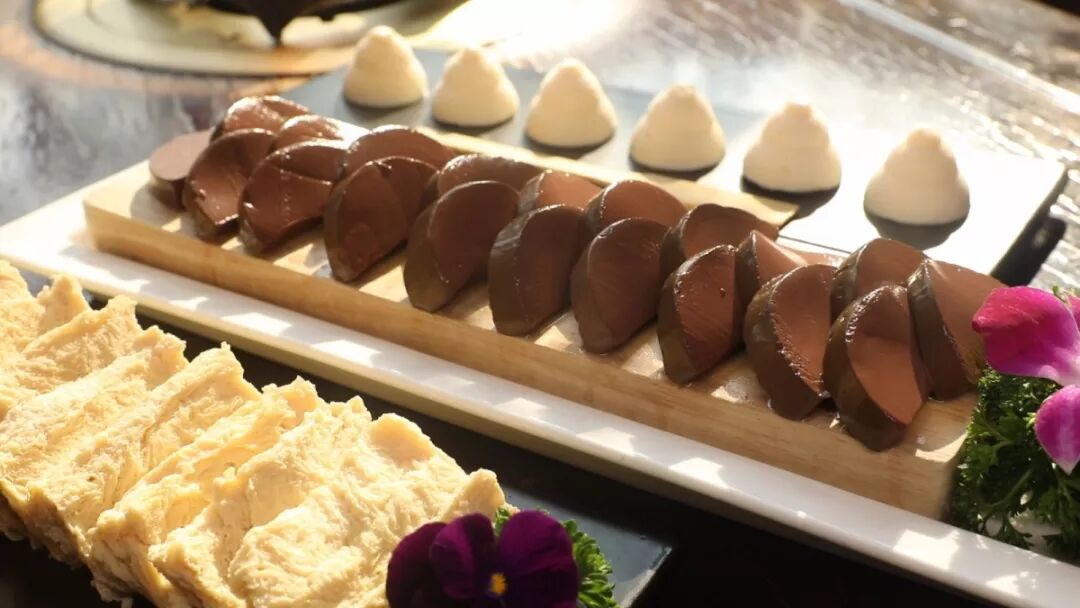 肥瘦交杂的牛肉,猪肉和羊肉,它们的外形十分整薄,红白相间的纹理明艳动人,而且同样久煮不老,是名副其实的“无老”肉。另外店家赠送了冰激凌豆腐,口感柔润绵密而又富有弹性。柠檬优格冰沙更是惊艳无比,清甜冰爽的好味道给这顿饭画上了一个完美的句号。