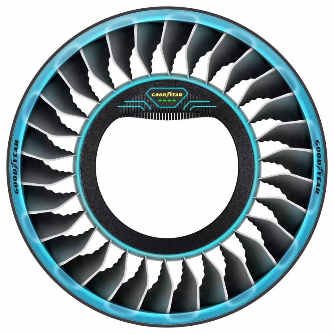 固特异AERO概念轮胎是一款专为未来可自动驾驶的飞行汽车设计研发的“二合一”轮胎。这款创新产品既是驰骋公路的车用轮胎,也可作为汽车空中飞行的“推进器”。作为一款概念轮胎,其所采用的免充气结构和人工智能这两项创新技术已列入固特异的研发日程,而另一些创新技术也将成为未来轮胎新颖理念和创新产品的灵感源泉。