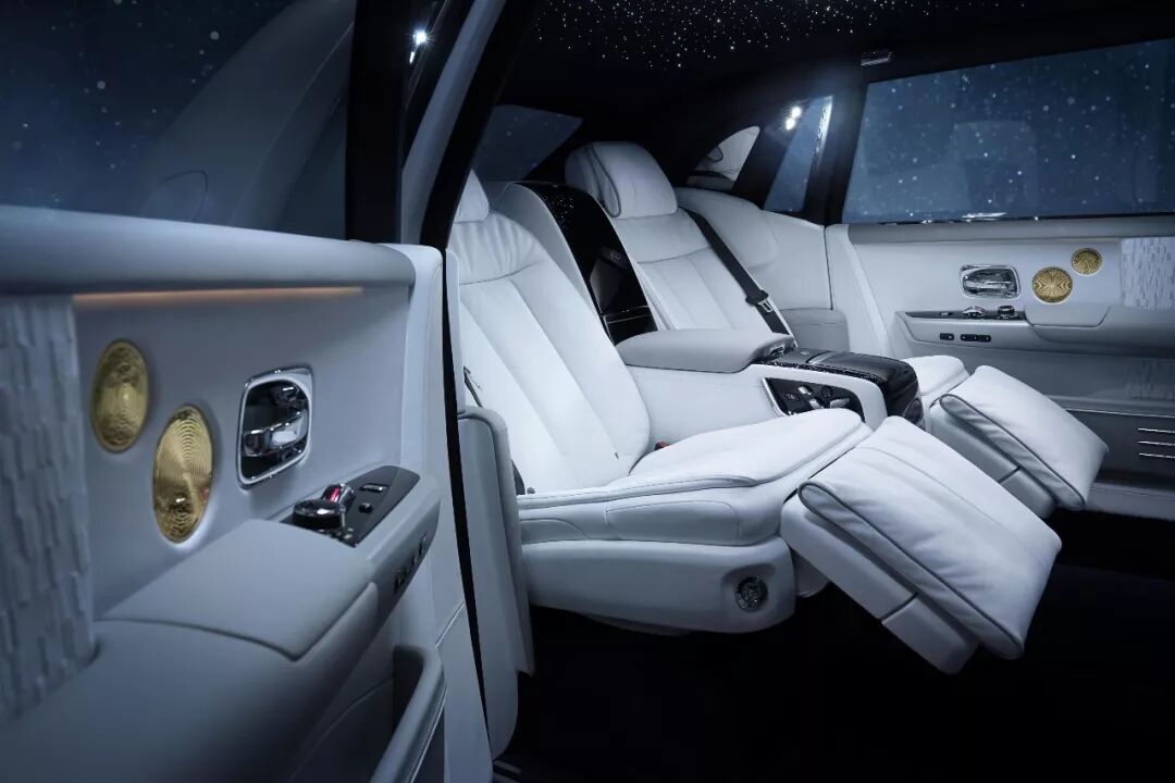 在黑、白两款车型中,劳斯莱斯高级定制扬声器均为金黄色设计,进一步映衬车内的金色元素。这些独特元素的灵感来自美国国家航空和宇宙航行局(NASA)发射的著名的“旅行者号”探测器。“旅行者号”探测器曾携带两张金色唱片进入太空,唱片中记录了多种来自地球的声音和影像,描绘了地球生命和文化的多样性,以期能够被外太空的智慧生命发现。