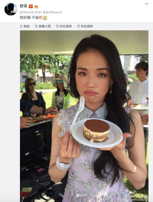 如果在舒淇的微博搜索关键字吃,你会发现她发了几十条“不能吃”……