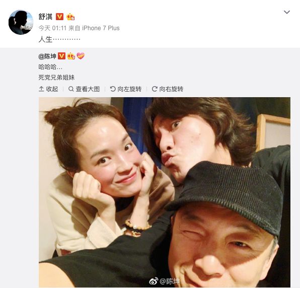 一天内她就能勤快地发5条微博!除了工作内容,她还祝福了赵丽颖产子,与贾樟柯导演合照,到了半夜,又转发了自己跟好友陈坤聚会的照片。
